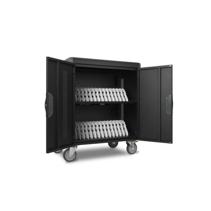 Kensington AC 32 Bay Charging Cabinet automatically prioritizes power to the devices that need it most Charges, transports, locks, and stores up to 32 devices (up to 15.6'' each) Lockable Front and Rear Doors. Built-In Dividers and Cable Management