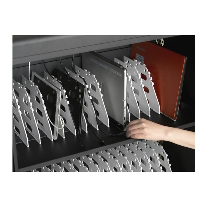 Kensington AC 32 Bay Charging Cabinet automatically prioritizes power to the devices that need it most Charges, transports, locks, and stores up to 32 devices (up to 15.6'' each) Lockable Front and Rear Doors. Built-In Dividers and Cable Management